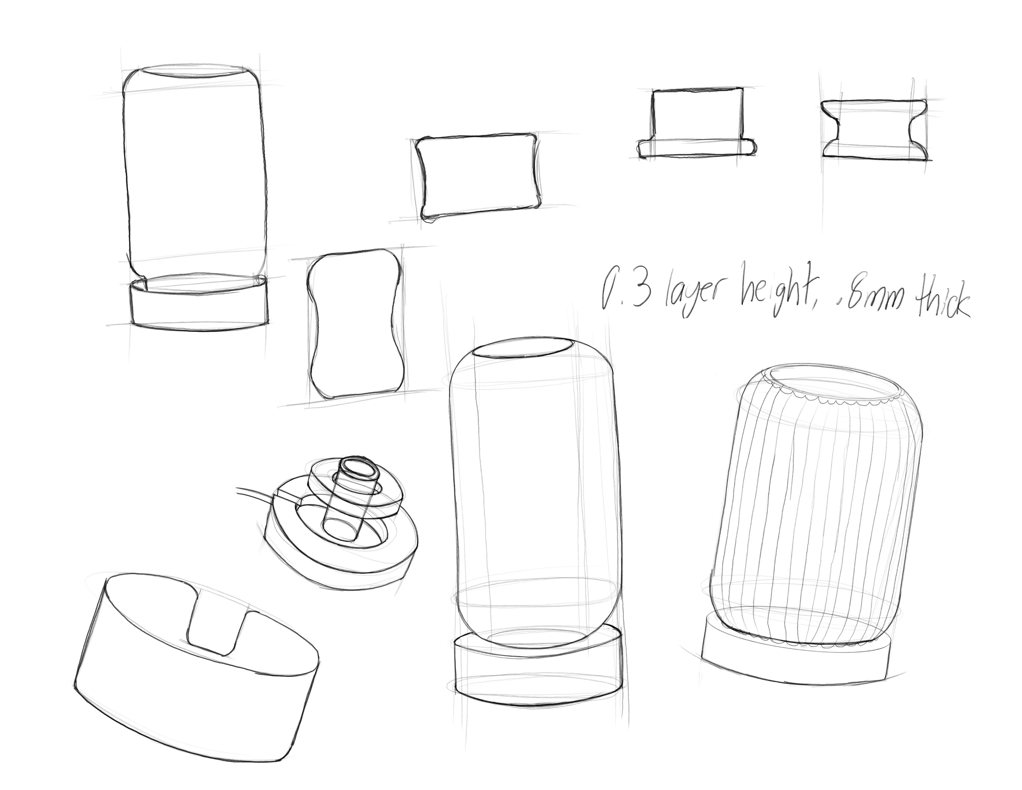 This product posed 2 challenges: integrating the electronic components and making a thin enough shade to diffuse light without being so thin that it falls in on itself while printing.