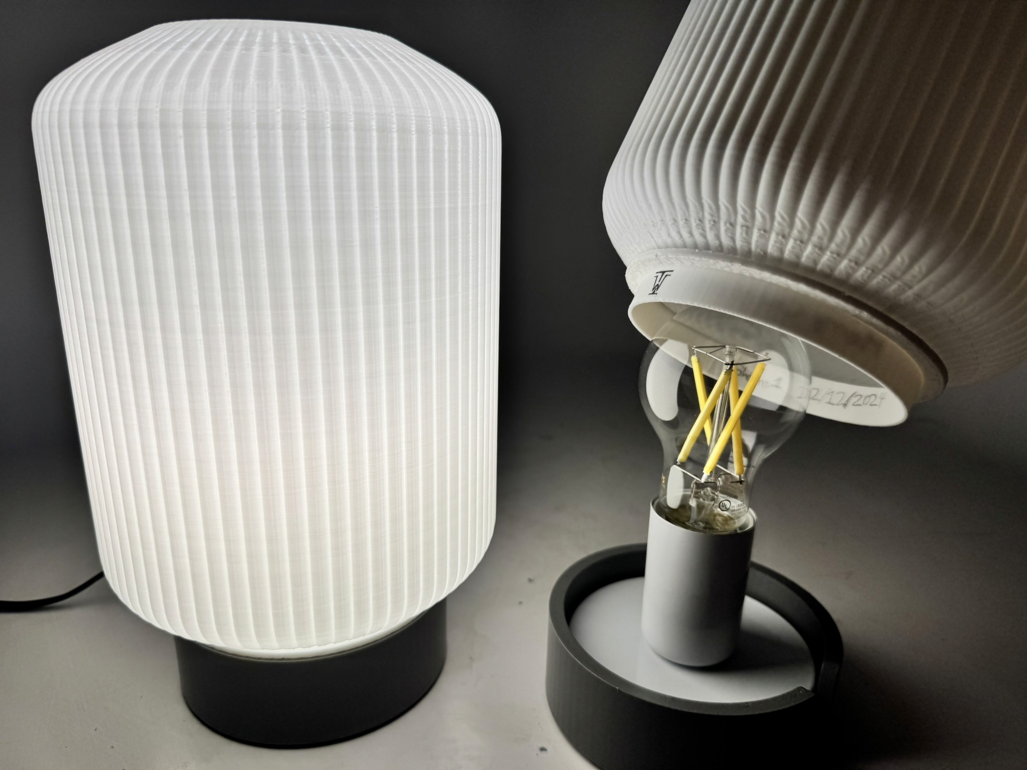 3D-printed fluted lamp, created as a Christmas Gift