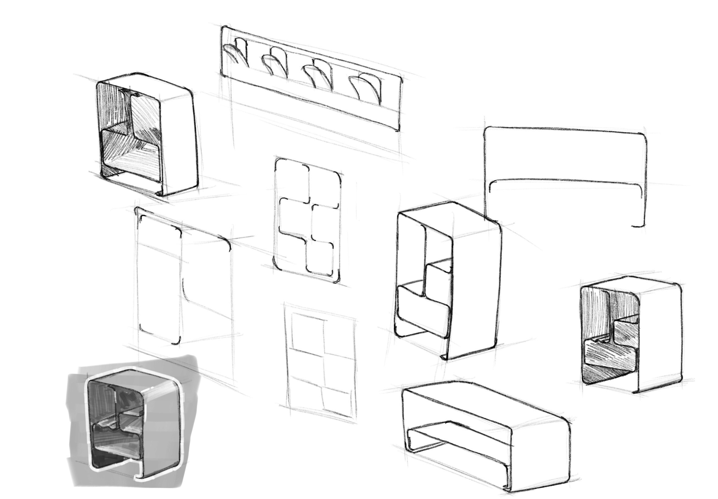 Primary colors are back in style. I wanted to create something simple but loud, a statement piece that can add a pop of color into your space. By utilizing different sized storage areas around the end table, the user can stay organized and have a dedicated spot for each item. Similarly, the fluted floor section lets the user slot their books into the end table without having to worry about them falling over.